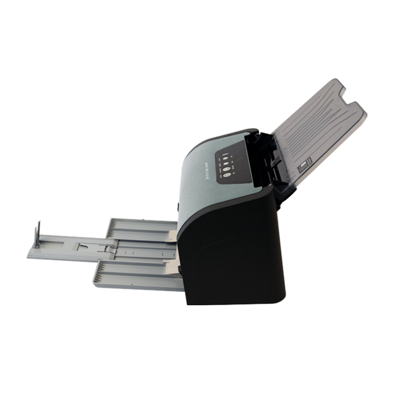 一次性可放置100頁(yè)A4標(biāo)準(zhǔn)紙的進(jìn)紙器,尤如一個(gè)“吃紙巨獸”,能批量處理不同厚度、不同尺寸、不同材質(zhì)的文檔及硬卡(身份證、銀行卡或小于1.3毫米厚度的浮雕卡)。